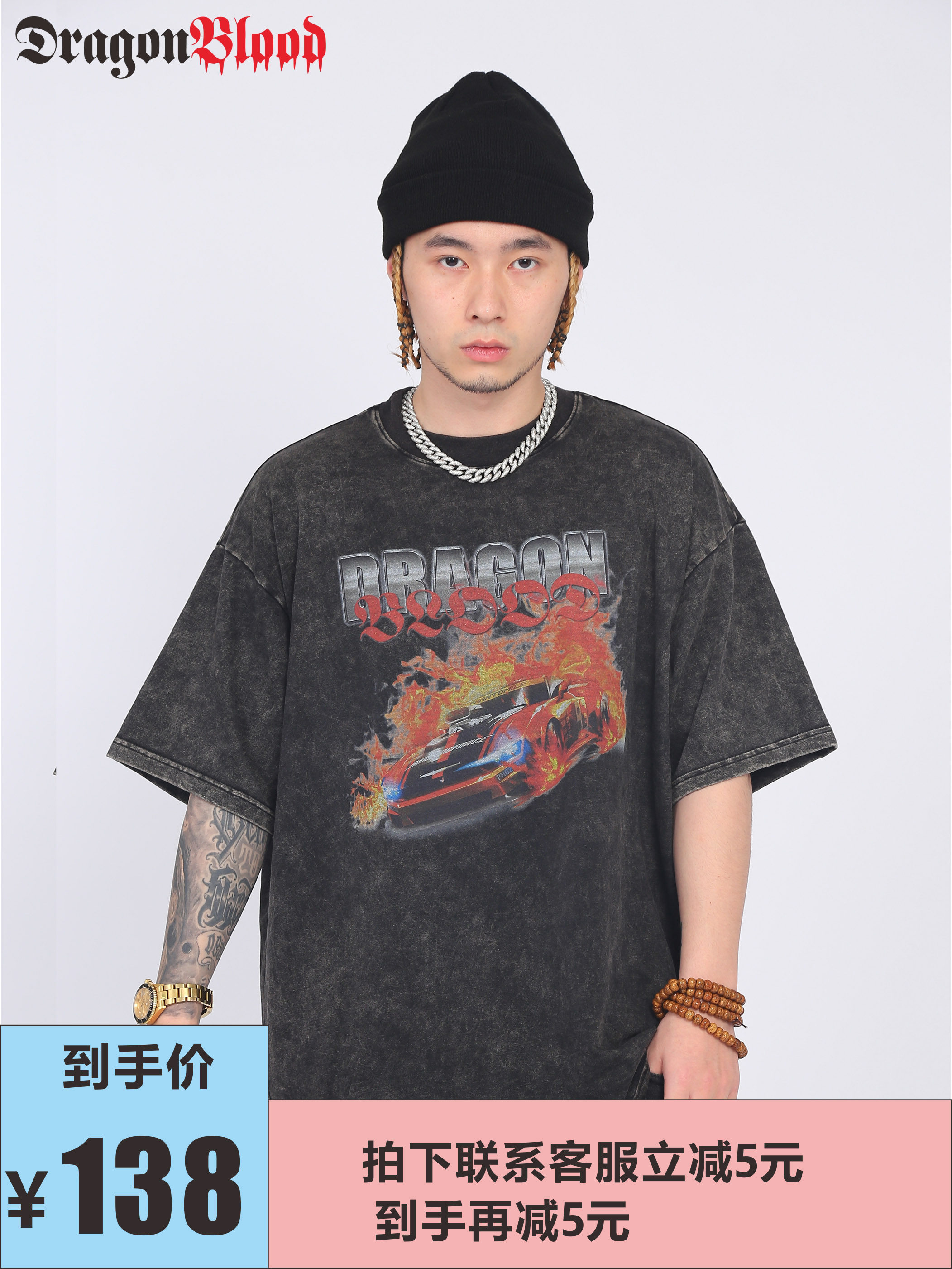 DragonBlood2021夏季水洗做旧数码印花火焰赛车圆领短袖T恤男女热门设计联盟服务商